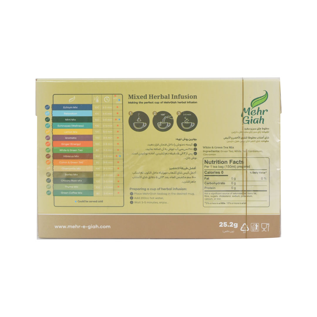 دمنوش مخلوط چای سبز و چای سفید حاوی آنتیاکسیدان های زیادی است که به پیشگیری از سرطان کمک می کنند. این دمنوش قند خون را تنظیم کرده و مصرف مرتب چند فنجان از آن در طول روز می تواند احتمال مبتلا شدن به دیابت نوع 2 را کاهش دهد.